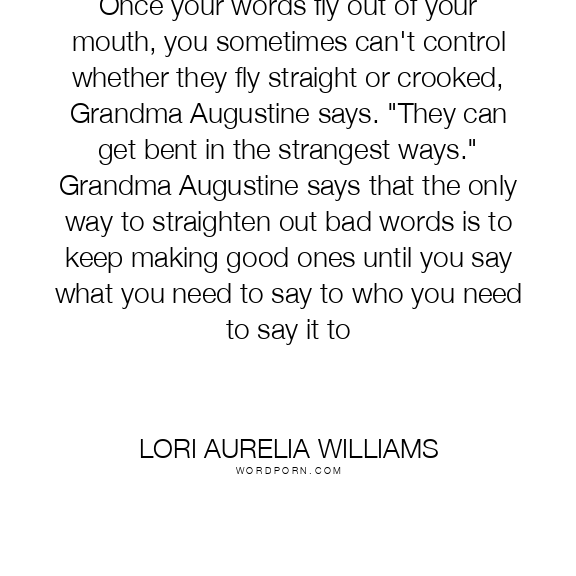 Once your words fly out of your mouth, you sometimes can't control whether they fly straight or crooked, Grandma Augustine says. "They can get bent in the strangest ways." Grandma Augustine says that the only way to straighten out bad words is to keep making good ones until you say what you need to say to who you need to say it to