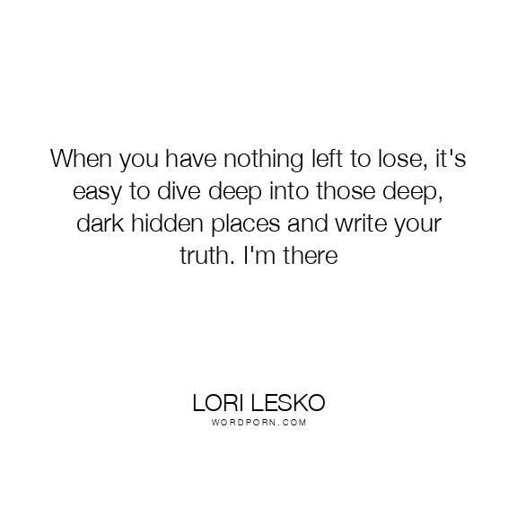When you have nothing left to lose, it's easy to dive deep into those deep, dark hidden places and write your truth. I'm there