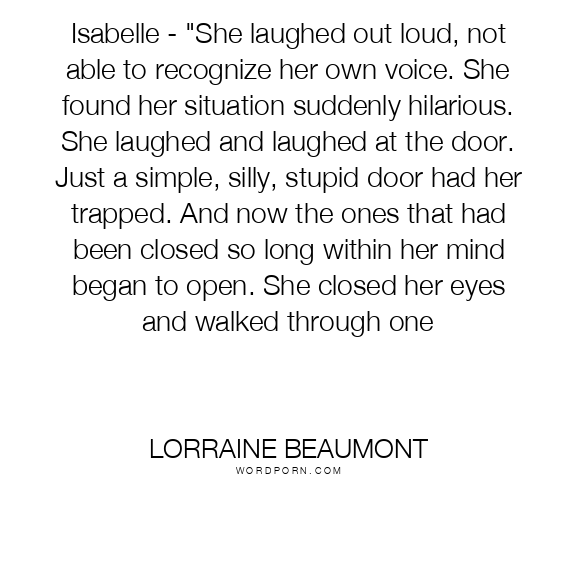 Isabelle - "She laughed out loud, not able to recognize her own voice. She found her situation suddenly hilarious. She laughed and laughed at the door. Just a simple, silly, stupid door had her trapped. And now the ones that had been closed so long within her mind began to open. She closed her eyes and walked through one