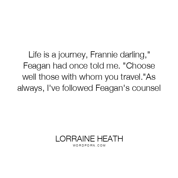 Life is a journey, Frannie darling," Feagan had once told me. "Choose well those with whom you travel."As always, I've followed Feagan's counsel