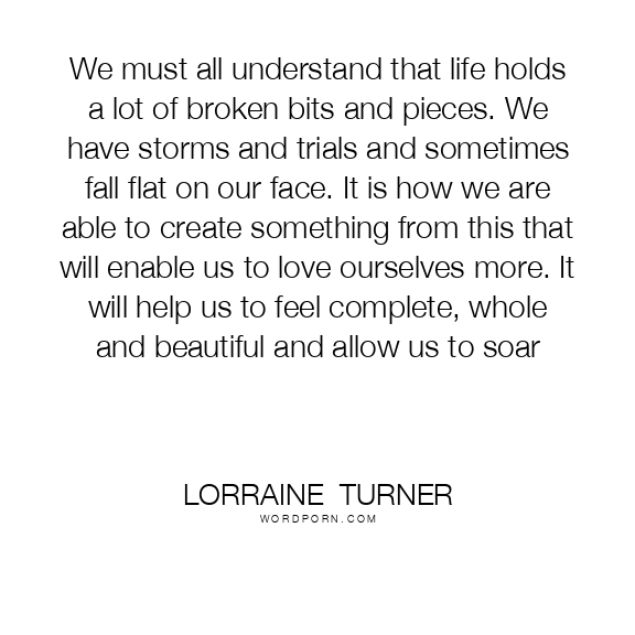 We must all understand that life holds a lot of broken bits and pieces. We have storms and trials and sometimes fall flat on our face. It is how we are able to create something from this that will enable us to love ourselves more. It will help us to feel complete, whole and beautiful and allow us to soar