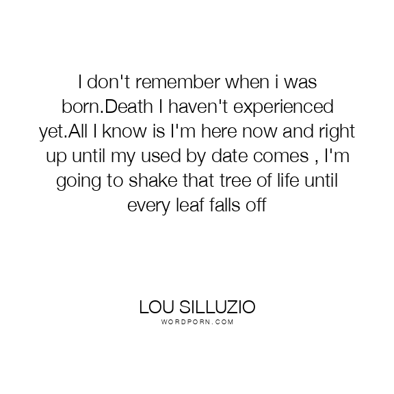 I don't remember when i was born.Death I haven't experienced yet.All I know is I'm here now and right up until my used by date comes , I'm going to shake that tree of life until every leaf falls off