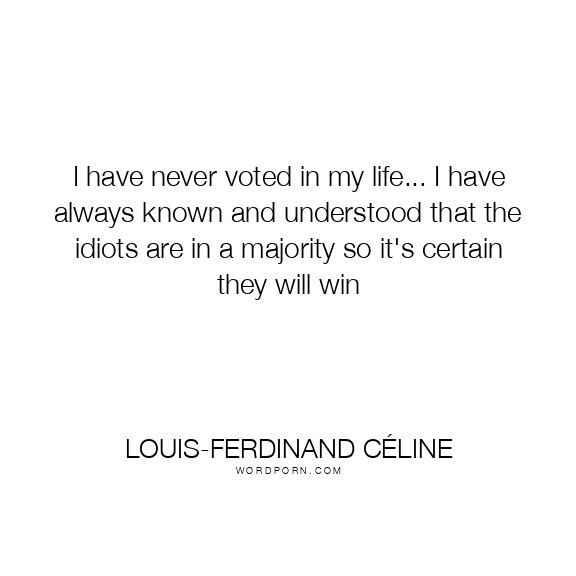 I have never voted in my life... I have always known and understood that the idiots are in a majority so it's certain they will win