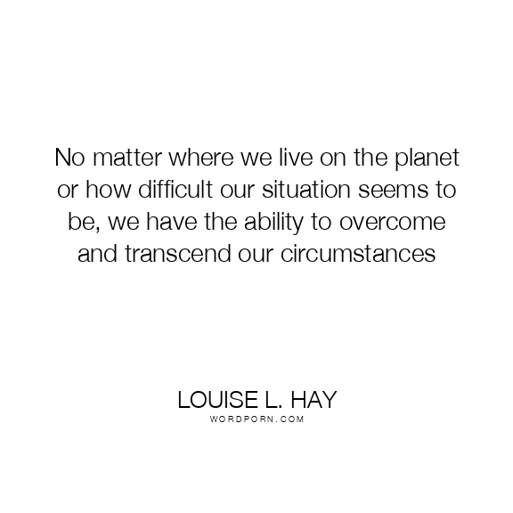 No matter where we live on the planet or how difficult our situation seems to be, we have the ability to overcome and transcend our circumstances