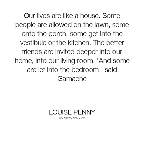 Our lives are like a house. Some people are allowed on the lawn, some onto the porch, some get into the vestibule or the kitchen. The better friends are invited deeper into our home, into our living room.''And some are let into the bedroom,' said Gamache