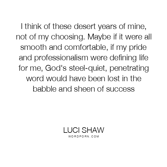 I think of these desert years of mine, not of my choosing. Maybe if it were all smooth and comfortable, if my pride and professionalism were defining life for me, God's steel-quiet, penetrating word would have been lost in the babble and sheen of success