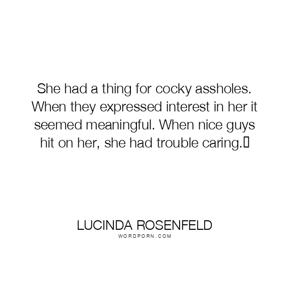 She had a thing for cocky assholes. When they expressed interest in her it seemed meaningful. When nice guys hit on her, she had trouble caring.