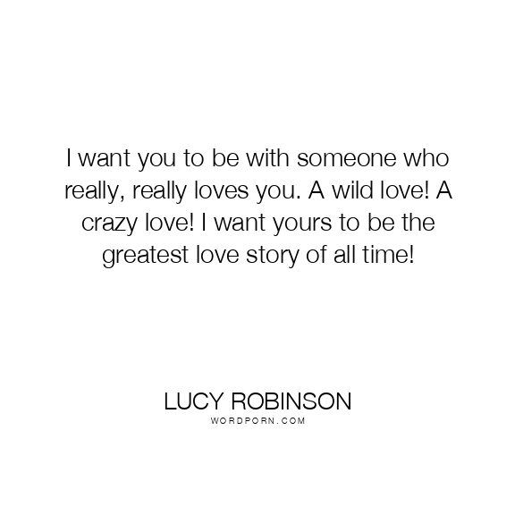 I want you to be with someone who really, really loves you. A wild love! A crazy love! I want yours to be the greatest love story of all time!