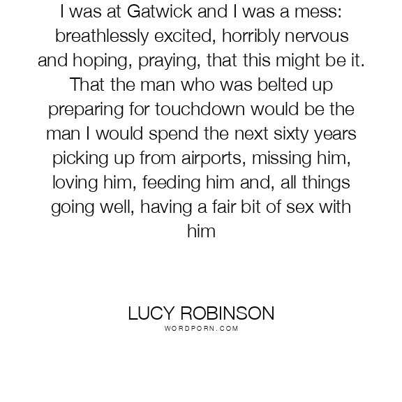 I was at Gatwick and I was a mess: breathlessly excited, horribly nervous and hoping, praying, that this might be it. That the man who was belted up preparing for touchdown would be the man I would spend the next sixty years picking up from airports, missing him, loving him, feeding him and, all things going well, having a fair bit of sex with him