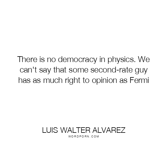 Copy Image There is no democracy in physics. We can't say that some second-rate guy has as much right to opinion as Fermi Moms Typewriter A A SAVE THIS IMAGE