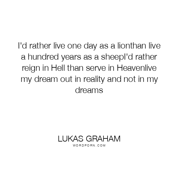 I'd rather live one day as a lionthan live a hundred years as a sheepI'd rather reign in Hell than serve in Heavenlive my dream out in reality and not in my dreams