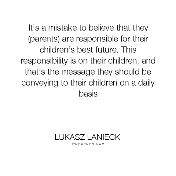 It’s a mistake to believe that they (parents) are responsible for their children’s best future. This responsibility is on their children, and that’s the message they should be conveying to their children on a daily basis