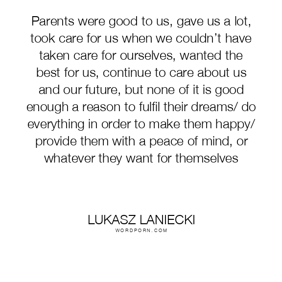 Parents were good to us, gave us a lot, took care for us when we couldn’t have taken care for ourselves, wanted the best for us, continue to care about us and our future, but none of it is good enough a reason to fulfil their dreams/ do everything in order to make them happy/ provide them with a peace of mind, or whatever they want for themselves