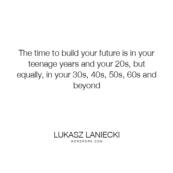 The time to build your future is in your teenage years and your 20s, but equally, in your 30s, 40s, 50s, 60s and beyond