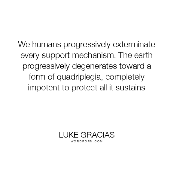 We humans progressively exterminate every support mechanism. The earth progressively degenerates toward a form of quadriplegia, completely impotent to protect all it sustains
