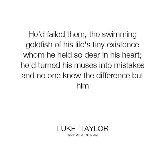 He'd failed them, the swimming goldfish of his life's tiny existence whom he held so dear in his heart; he'd turned his muses into mistakes and no one knew the difference but him