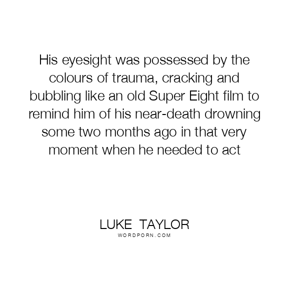 His eyesight was possessed by the colours of trauma, cracking and bubbling like an old Super Eight film to remind him of his near-death drowning some two months ago in that very moment when he needed to act
