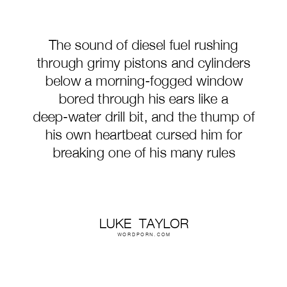 The sound of diesel fuel rushing through grimy pistons and cylinders below a morning-fogged window bored through his ears like a deep-water drill bit, and the thump of his own heartbeat cursed him for breaking one of his many rules