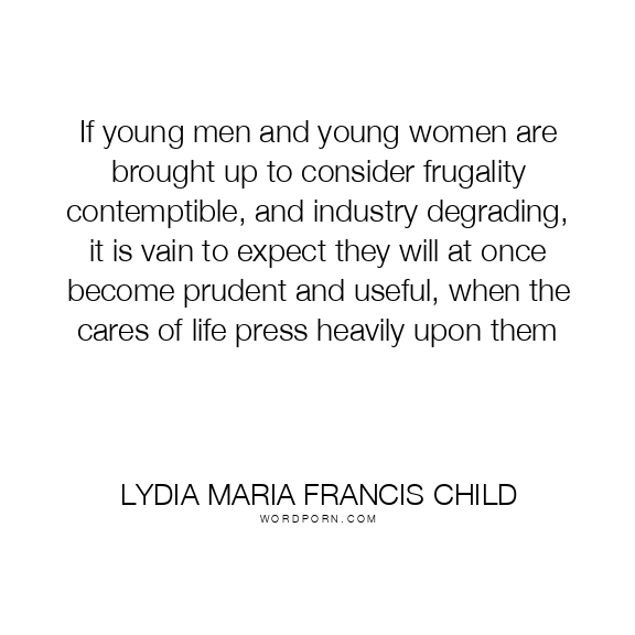If young men and young women are brought up to consider frugality contemptible, and industry degrading, it is vain to expect they will at once become prudent and useful, when the cares of life press heavily upon them