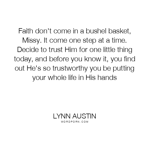 Faith don't come in a bushel basket, Missy. It come one step at a time. Decide to trust Him for one little thing today, and before you know it, you find out He's so trustworthy you be putting your whole life in His hands
