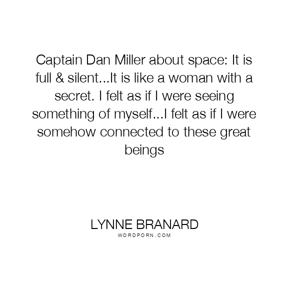 Captain Dan Miller about space: It is full & silent...It is like a woman with a secret. I felt as if I were seeing something of myself...I felt as if I were somehow connected to these great beings