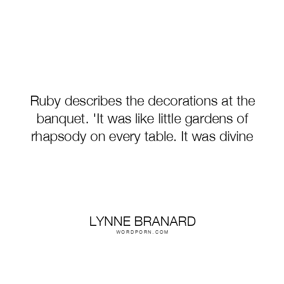 Ruby describes the decorations at the banquet. 'It was like little gardens of rhapsody on every table. It was divine
