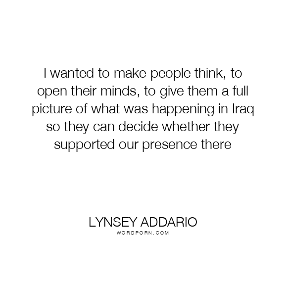 I wanted to make people think, to open their minds, to give them a full picture of what was happening in Iraq so they can decide whether they supported our presence there