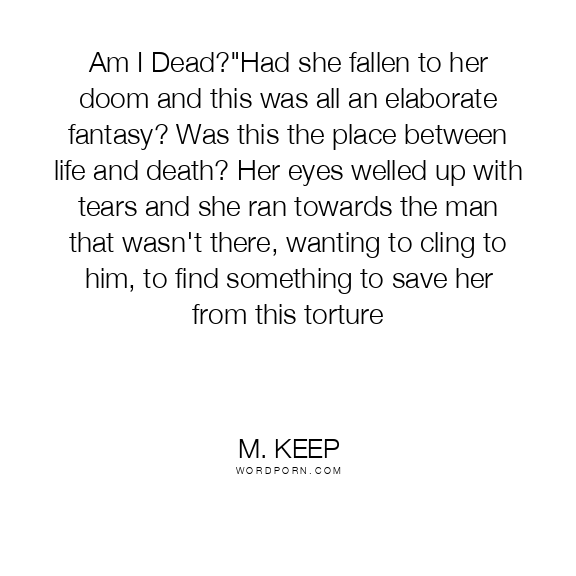 Am I Dead?"Had she fallen to her doom and this was all an elaborate fantasy? Was this the place between life and death? Her eyes welled up with tears and she ran towards the man that wasn't there, wanting to cling to him, to find something to save her from this torture