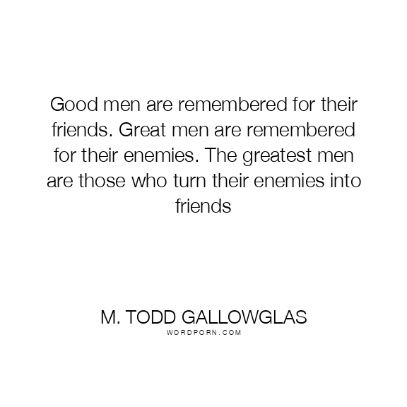 Copy Image Good men are remembered for their friends. Great men are remembered for their enemies. The greatest men are those who turn their enemies into friends Moms Typewriter A A SAVE THIS IMAGE