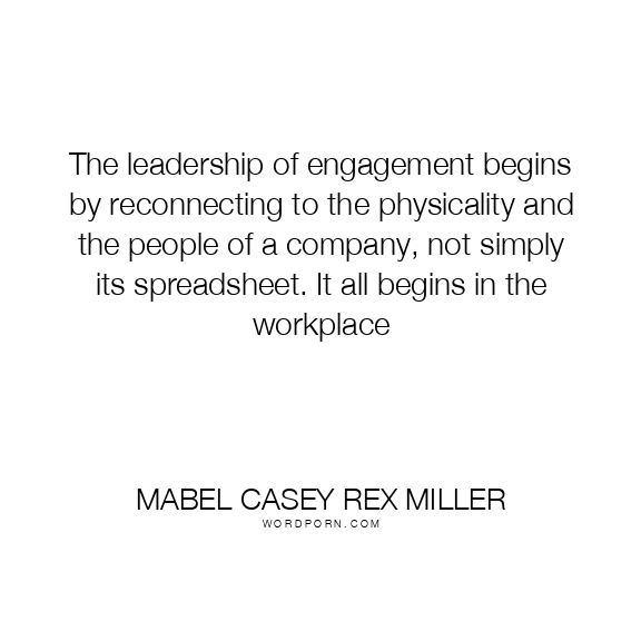 The leadership of engagement begins by reconnecting to the physicality and the people of a company, not simply its spreadsheet. It all begins in the workplace