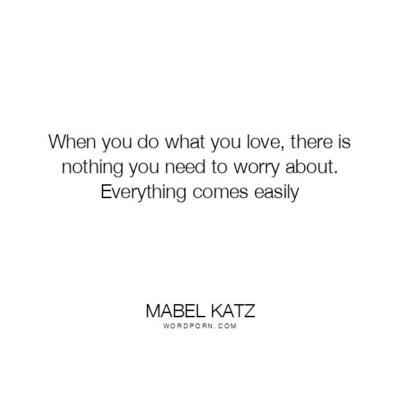 When you do what you love, there is nothing you need to worry about. Everything comes easily