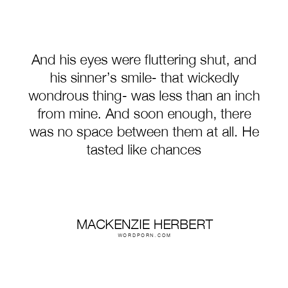 And his eyes were fluttering shut, and his sinner’s smile- that wickedly wondrous thing- was less than an inch from mine. And soon enough, there was no space between them at all. He tasted like chances