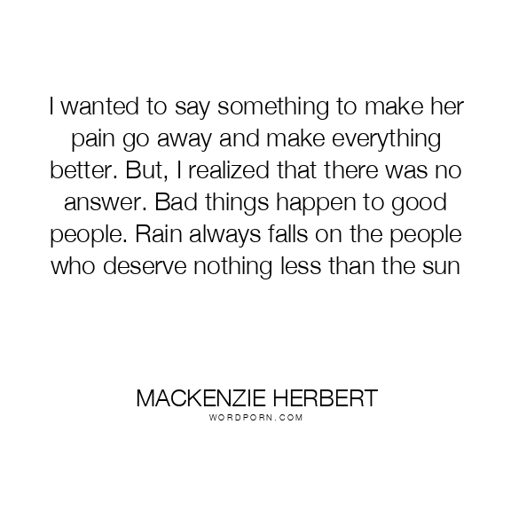 I wanted to say something to make her pain go away and make everything better. But, I realized that there was no answer. Bad things happen to good people. Rain always falls on the people who deserve nothing less than the sun