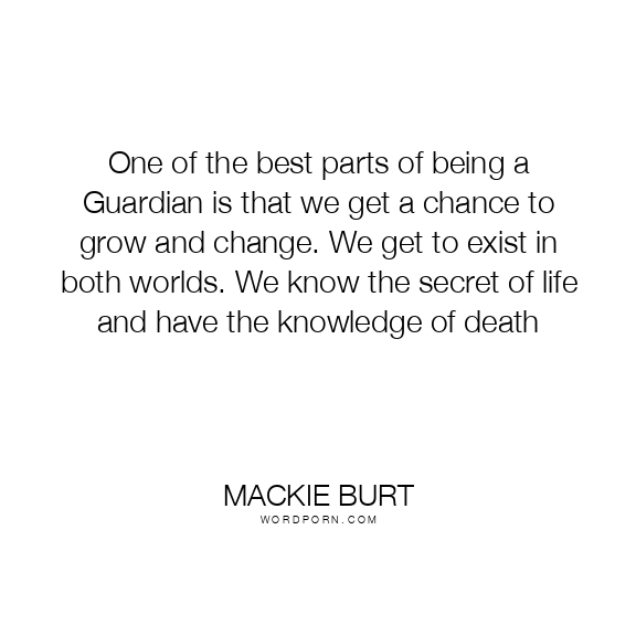 Copy Image One of the best parts of being a Guardian is that we get a chance to grow and change. We get to exist in both worlds. We know the secret of life and have the knowledge of death Moms Typewriter A A SAVE THIS IMAGE