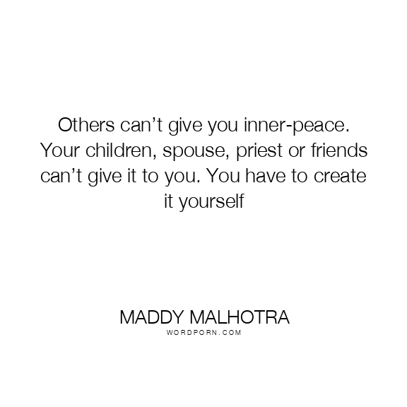 Others can’t give you inner-peace. Your children, spouse, priest or friends can’t give it to you. You have to create it yourself
