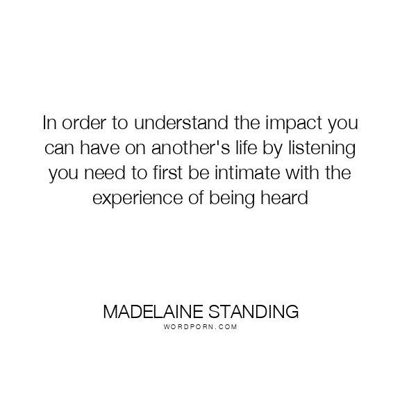 In order to understand the impact you can have on another's life by listening you need to first be intimate with the experience of being heard