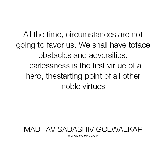 All the time, circumstances are not going to favor us. We shall have toface obstacles and adversities. Fearlessness is the first virtue of a hero, thestarting point of all other noble virtues