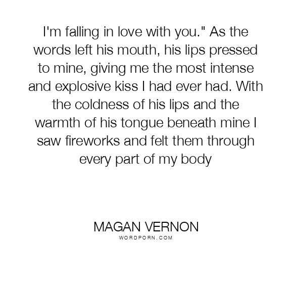 I'm falling in love with you." As the words left his mouth, his lips pressed to mine, giving me the most intense and explosive kiss I had ever had. With the coldness of his lips and the warmth of his tongue beneath mine I saw fireworks and felt them through every part of my body