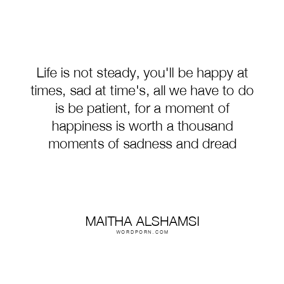 Life is not steady, you'll be happy at times, sad at time's, all we have to do is be patient, for a moment of happiness is worth a thousand moments of sadness and dread