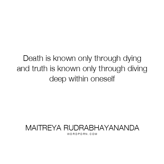 Death is known only through dying and truth is known only through diving deep within oneself