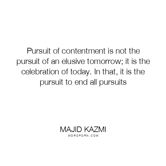 Pursuit of contentment is not the pursuit of an elusive tomorrow; it is the celebration of today. In that, it is the pursuit to end all pursuits