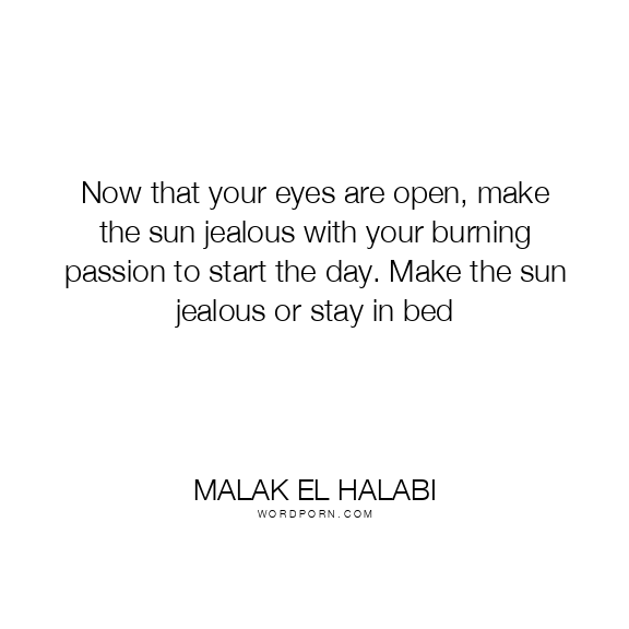 Now that your eyes are open, make the sun jealous with your burning passion to start the day. Make the sun jealous or stay in bed
