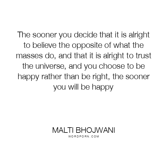 The sooner you decide that it is alright to believe the opposite of what the masses do, and that it is alright to trust the universe, and you choose to be happy rather than be right, the sooner you will be happy