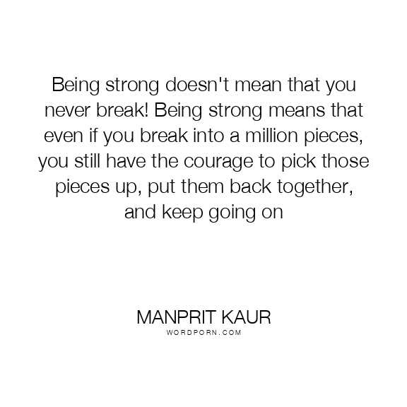 Being strong doesn't mean that you never break! Being strong means that even if you break into a million pieces, you still have the courage to pick those pieces up, put them back together, and keep going on