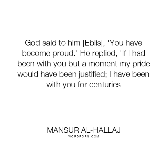 God said to him [Eblis], 'You have become proud.' He replied, 'If I had been with you but a moment my pride would have been justified; I have been with you for centuries