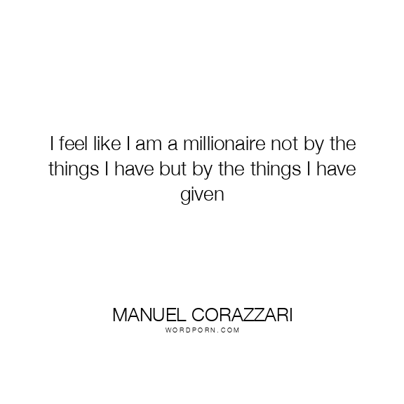 I feel like I am a millionaire not by the things I have but by the things I have given