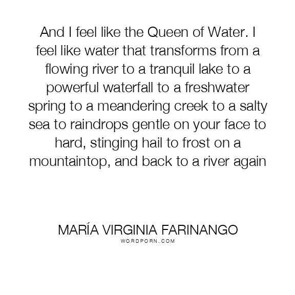 And I feel like the Queen of Water. I feel like water that transforms from a flowing river to a tranquil lake to a powerful waterfall to a freshwater spring to a meandering creek to a salty sea to raindrops gentle on your face to hard, stinging hail to frost on a mountaintop, and back to a river again