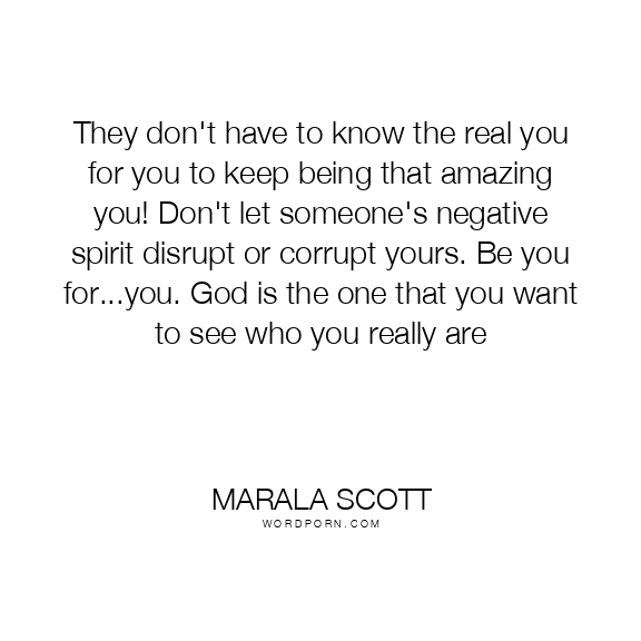 They don't have to know the real you for you to keep being that amazing you! Don't let someone's negative spirit disrupt or corrupt yours. Be you for...you. God is the one that you want to see who you really are