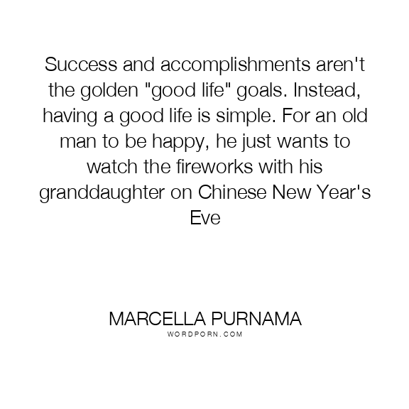Success and accomplishments aren't the golden "good life" goals. Instead, having a good life is simple. For an old man to be happy, he just wants to watch the fireworks with his granddaughter on Chinese New Year's Eve