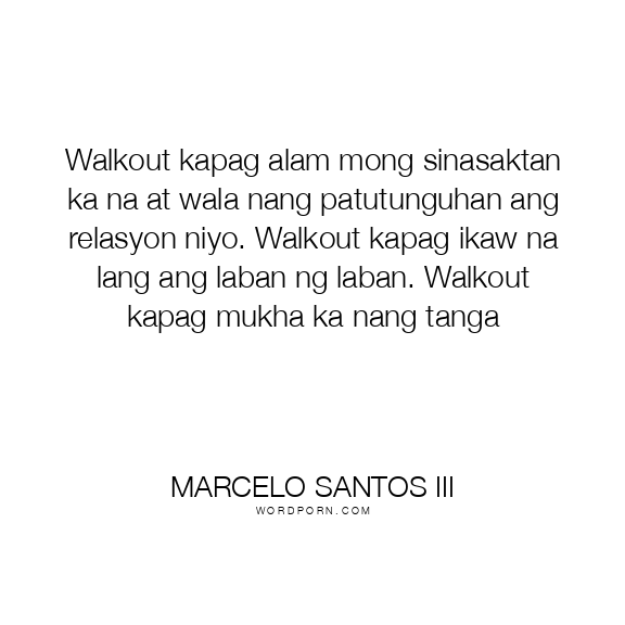 Walkout kapag alam mong sinasaktan ka na at wala nang patutunguhan ang relasyon niyo. Walkout kapag ikaw na lang ang laban ng laban. Walkout kapag mukha ka nang tanga